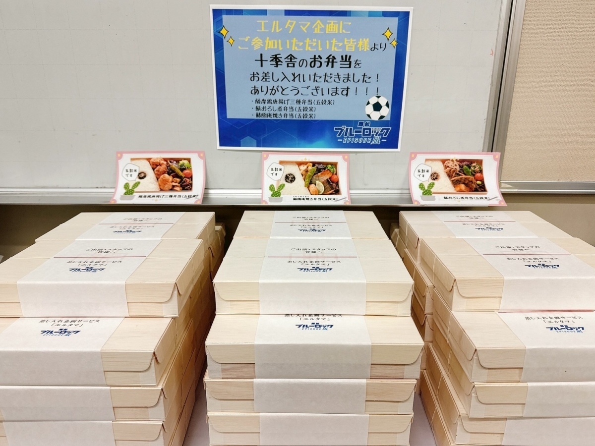 先日実施された舞台『ブルーロック -EPISODE 凪-』エルタマ企画にて、ファンの方々の応援の気持ちがこめられた差し入れが贈られました。また、ご登録いただいた全てのメッセージも届けられました。