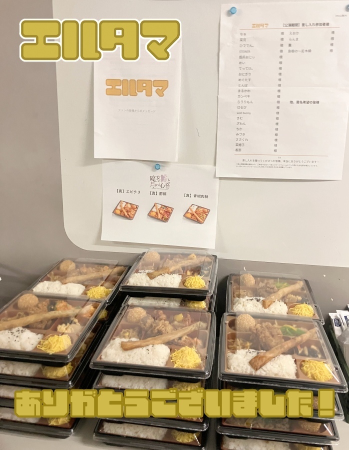 先日実施された舞台『魔女の嘘と月の心音』エルタマ企画にて、ファンの方々の応援の気持ちがこめられた差し入れが贈られました。また、ご登録いただいた全てのメッセージも届けられました。