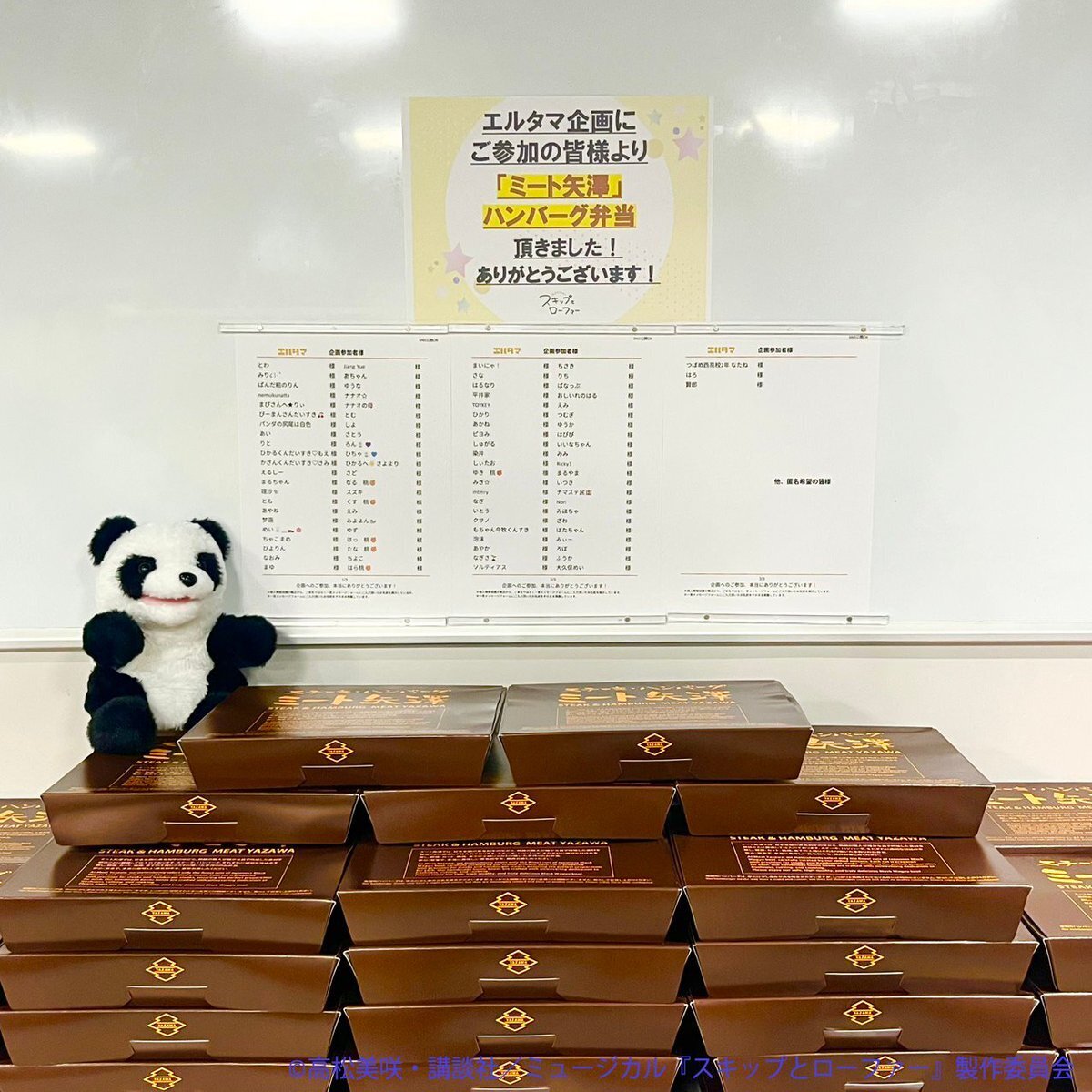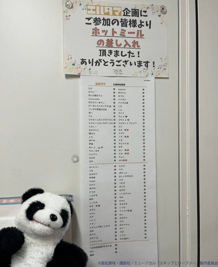 先日実施されたミュージカル『スキップとローファー』エルタマ企画にいただいた皆様へご報告です。お蔭様で公演の楽屋がこのように彩られました。ご登録いただいた全てのメッセージも届けられました。