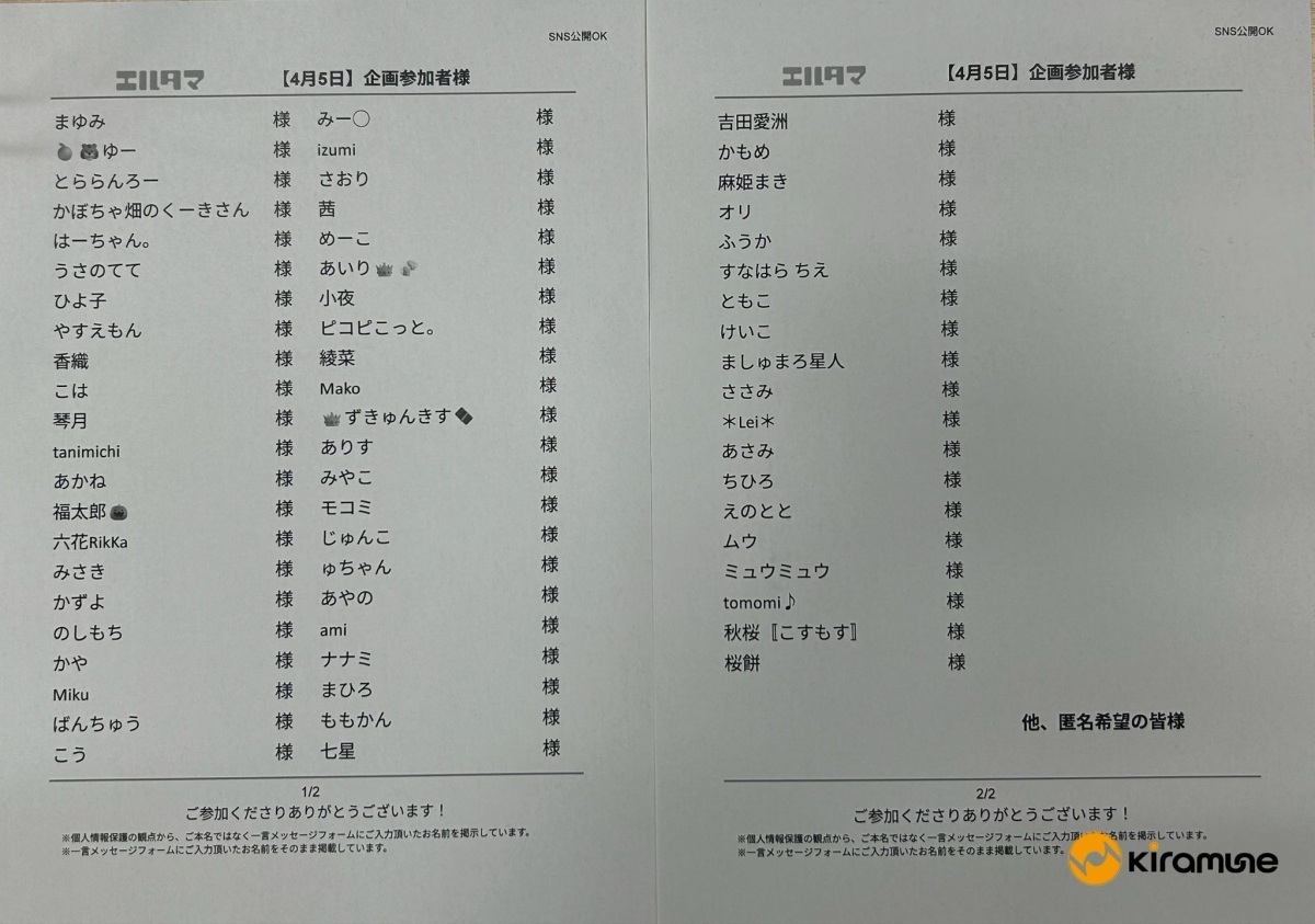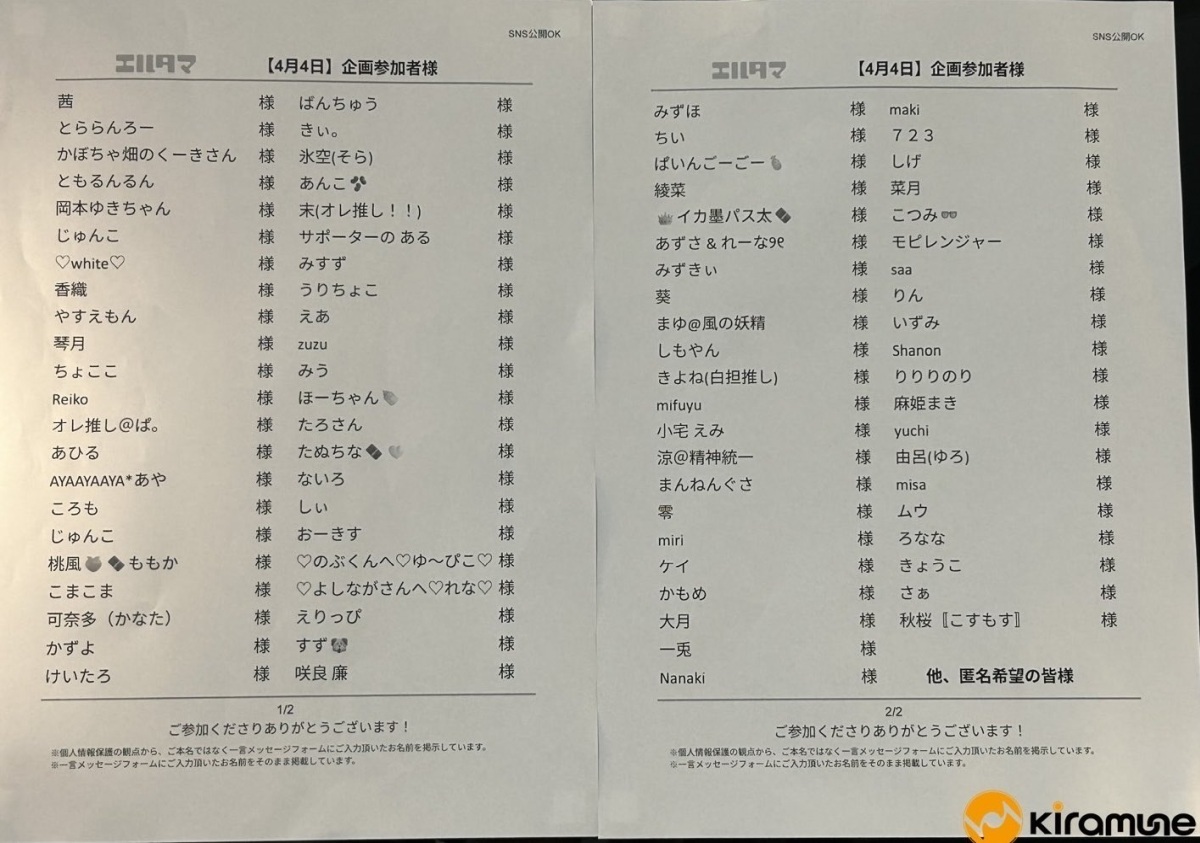 先日実施されたKiramune Presents READING LIVE 2026「パンプキンファームの宇宙人。」エルタマ企画にご参加いただいた皆様へご報告です。皆様のおかげで2日間の楽屋に写真のとおり彩りが加えられました。メッセージも含めありがとうございました。